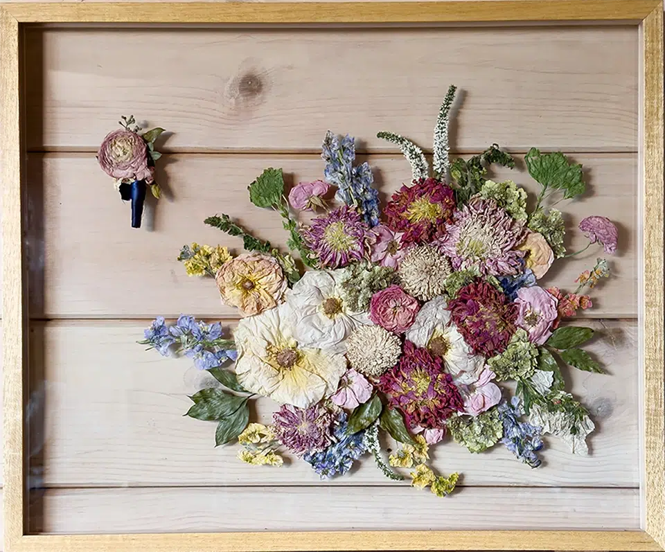 Studios such as For Keeps Florals are helping redefine the role of wedding flowers through archival botanical art. By transforming bouquets into pressed compositions housed in gallery-style frames, florals are no longer treated as disposable decor, but as raw material for a lasting heirloom. The result is both sustainable and deeply personal: a meaningful object that lives on long after the last dance.