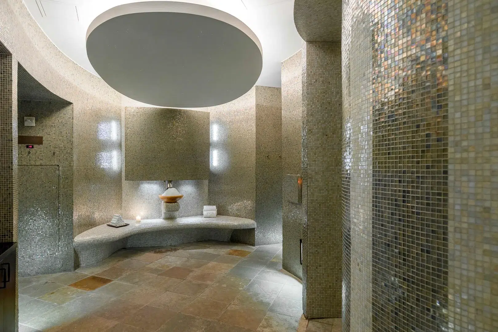 Before each treatment, guests move through several thermal spaces. This journey prepares the mind and body for deeper relaxation. First, the crystal steam room opens the senses. Later, the Finnish sauna warms the muscles. After that, an ice fountain cools the skin and wakes the mind. These contrasts feel refreshing, and each step encourages you to slow down.