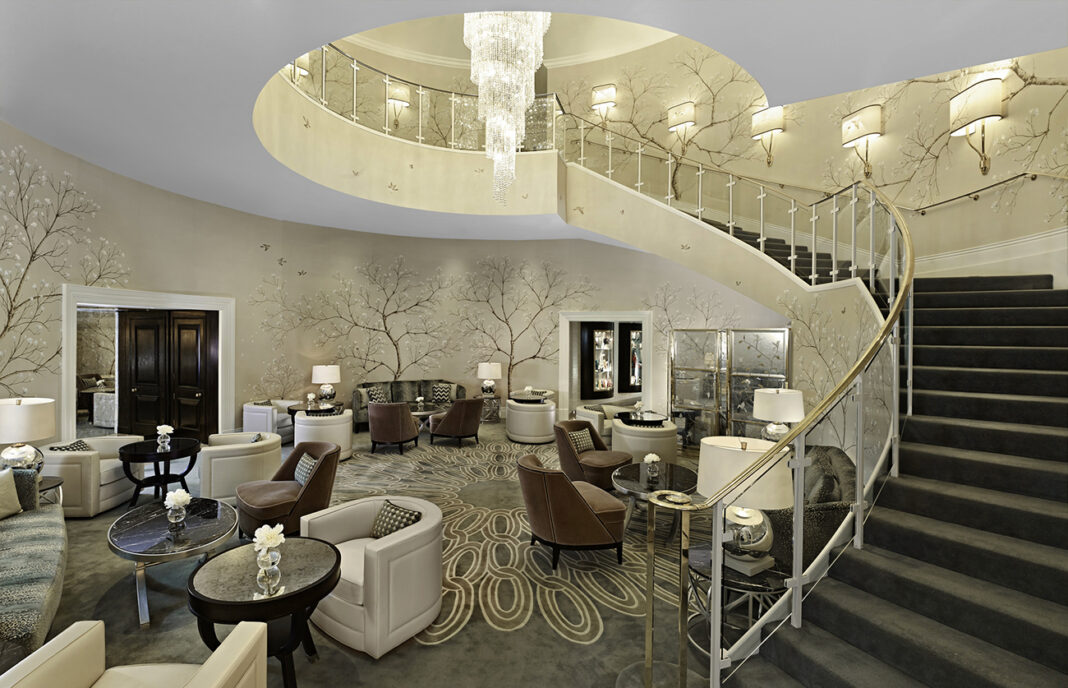 On entering the spacious, marble-floored foyer, I enjoyed the glorious decor within. So fresh and so light. For hanging from its oval coffered ceiling is a spectacular crystal and porcelain chandelier. And the wall behind the reception features sculptural reliefs of Hyde Park’s rose garden.