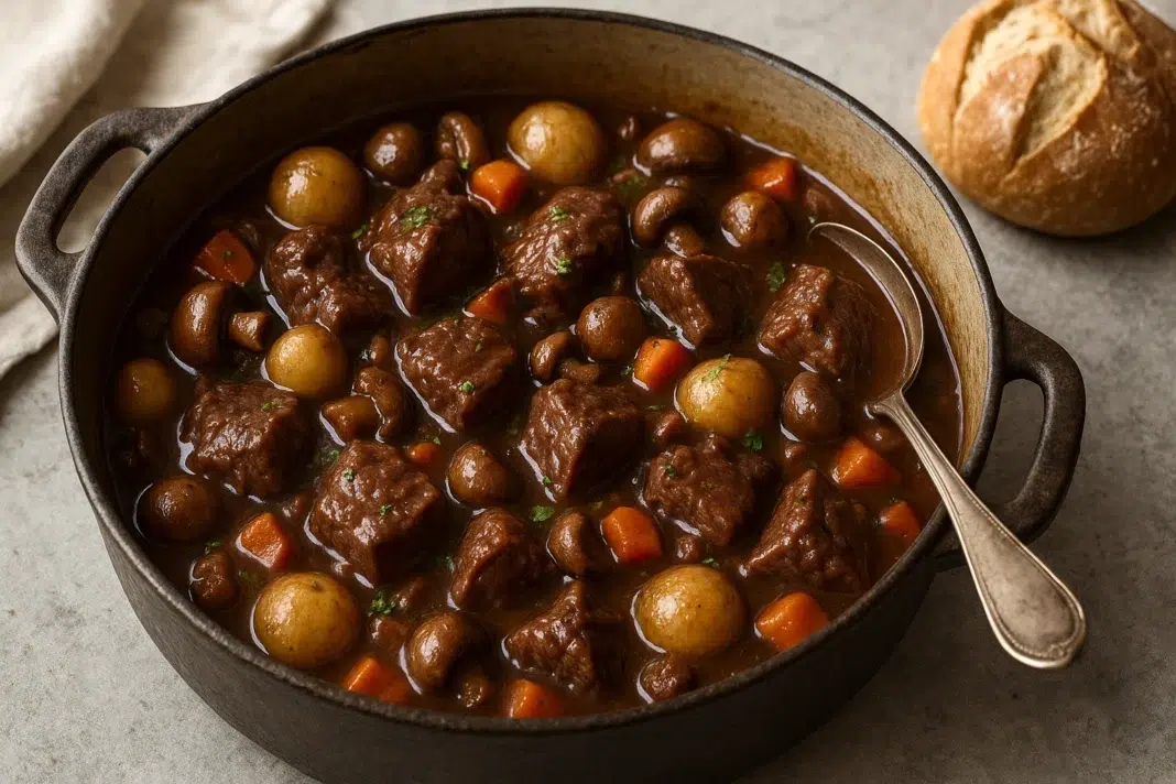 - Brown the mushrooms in a little oil in a separate pan and stir them into the stew near the end.