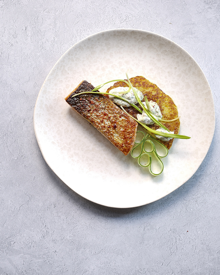 In my interpretation, the lamb is slowly braised until it’s fall-off-the-bone tender, and I serve it as a main course on the tasting menu. It’s accompanied by a smooth potato and feta espuma, lots of fresh tarragon, and a sprinkle of sumac for brightness and contrast. It’s bold, comforting, and full of character – and it’s been a real guest favorite.