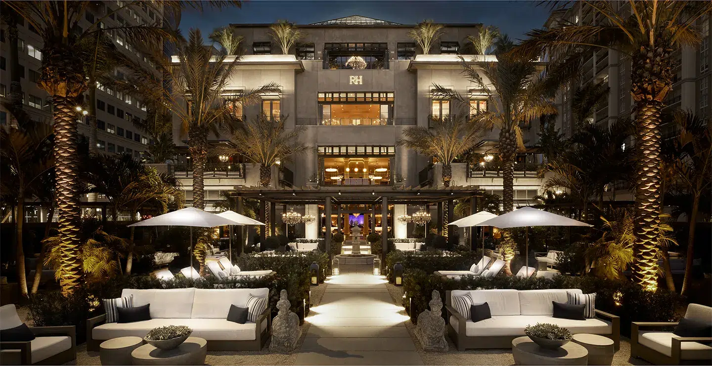 That distinction is most clearly expressed at the RH Rooftop Restaurant in West Palm Beach, where a restaurant is not introduced as an amenity, but as an integral layer of a fully composed environment.