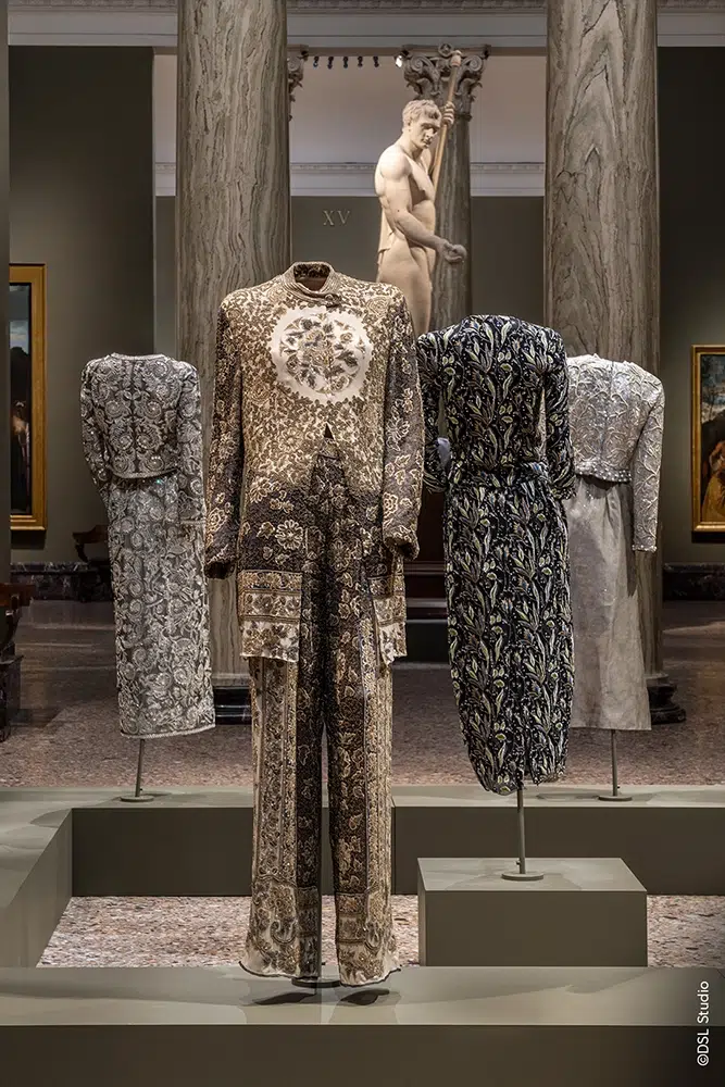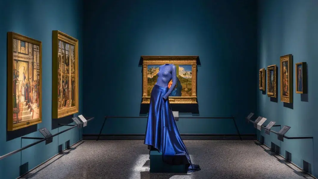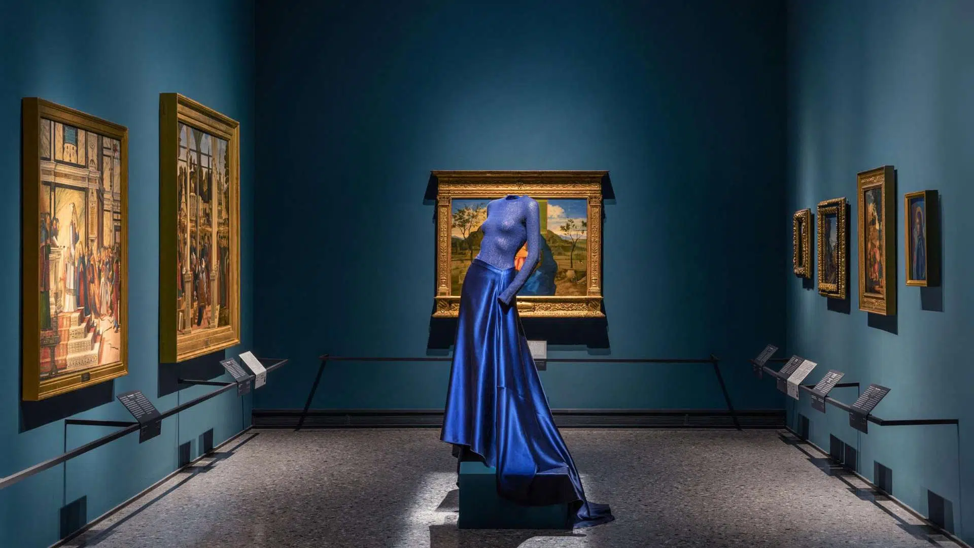 Rather than isolating fashion from its surroundings, the exhibition integrates it directly into Brera’s permanent collection. Armani’s garments appear alongside Italian masterpieces spanning centuries, entering into a dialogue that feels natural, almost inevitable. Here, clothing does not compete with art; it converses with it.