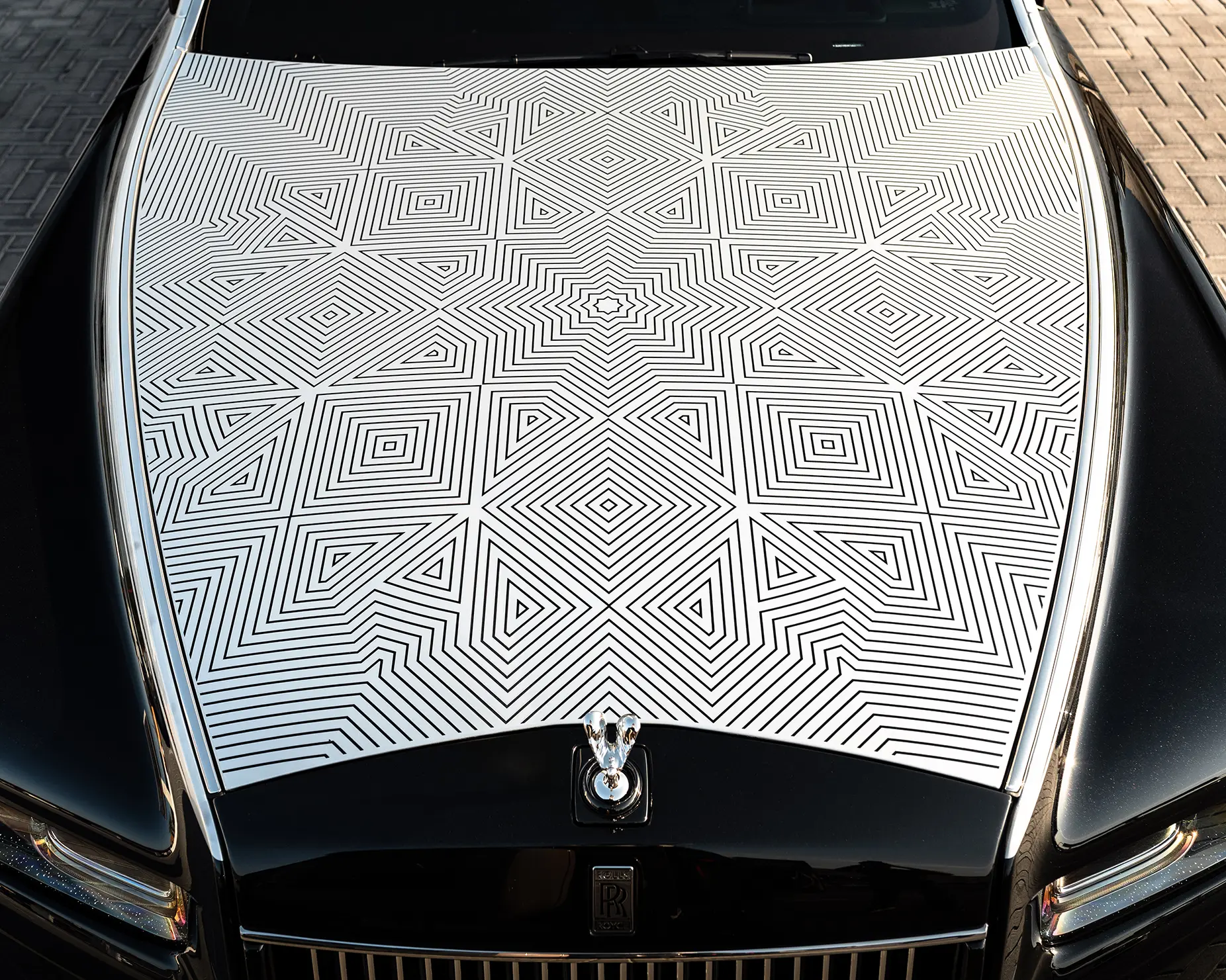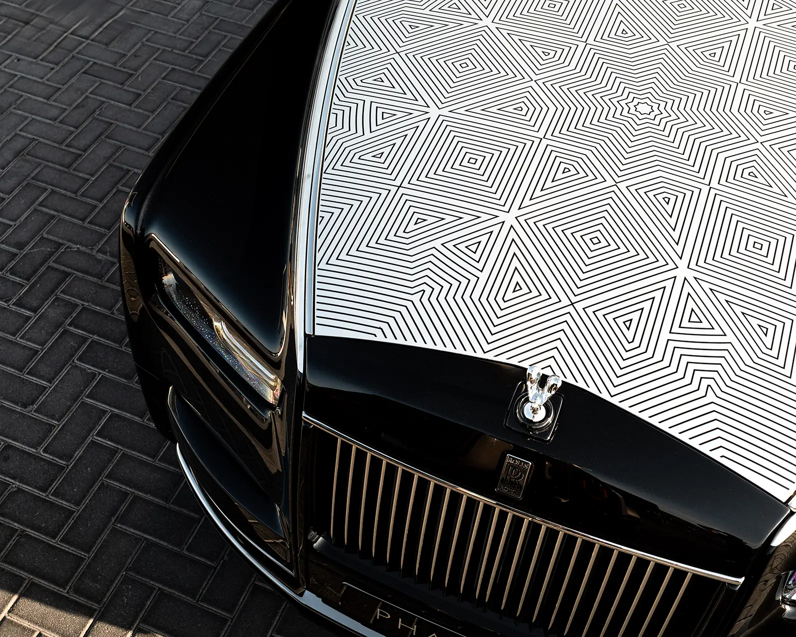 Rather than a decorative flourish, Phantom Arabesque explores the poetic geometry of mashrabiya latticework, the intricate wooden screens that define traditional Arabian architecture. These structures historically balanced privacy, airflow, and light — qualities translated here into a contemporary motor car that feels as much like a moving gallery as a grand touring limousine.