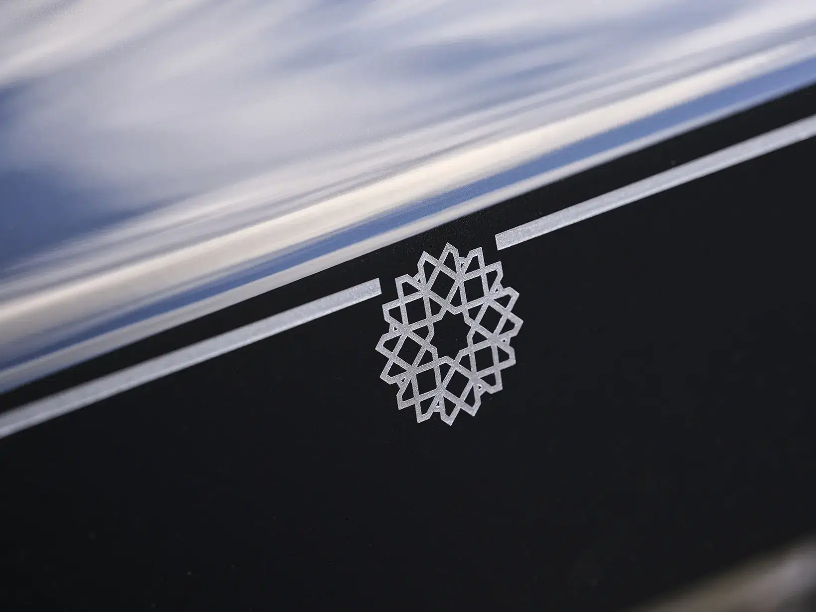 The centrepiece of the commission is the laser-engraved bonnet, a newly patented process inspired by the Italian sgraffito technique. Artisans begin by applying a darker base layer beneath multiple coats of clear lacquer, followed by a lighter surface tone. Using calibrated laser precision, the mashrabiya pattern is engraved to a depth measured in microns, revealing the darker layer beneath. The result is a tactile, sculptural surface that shifts with changing light — a quiet display of technical virtuosity rather than overt extravagance.