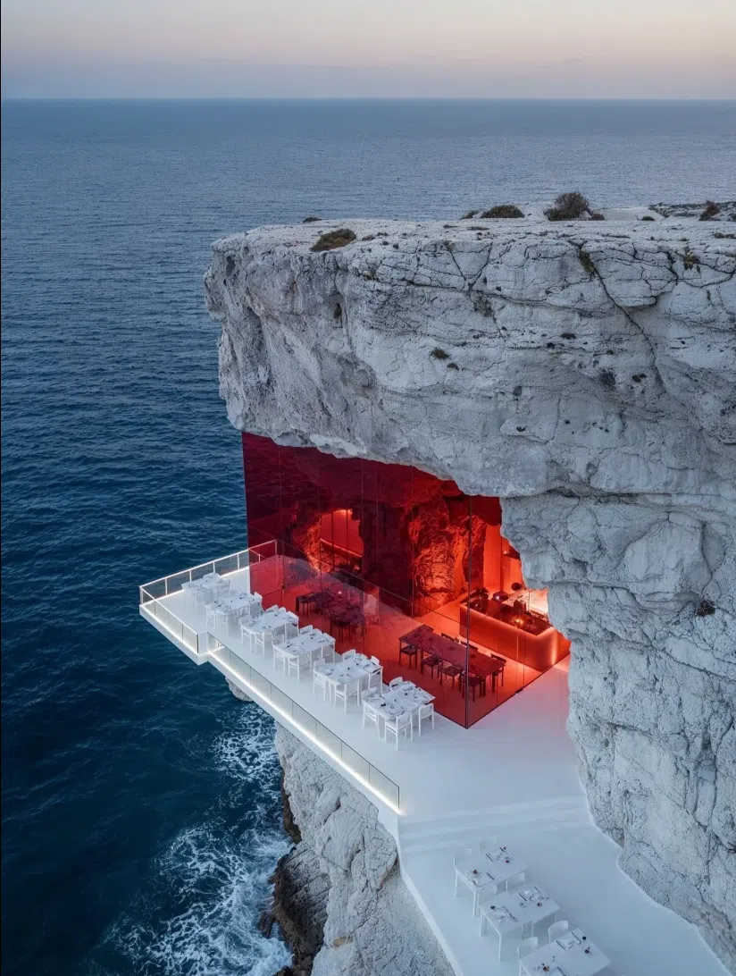 Matitectura’s creations feel like artifacts from a distant future — serene, sculptural, and impossibly precise. Whether perched over the ocean, nestled into carved rock, or wrapped in circular forms that echo celestial movement, each concept evokes mythology rather than modernity.