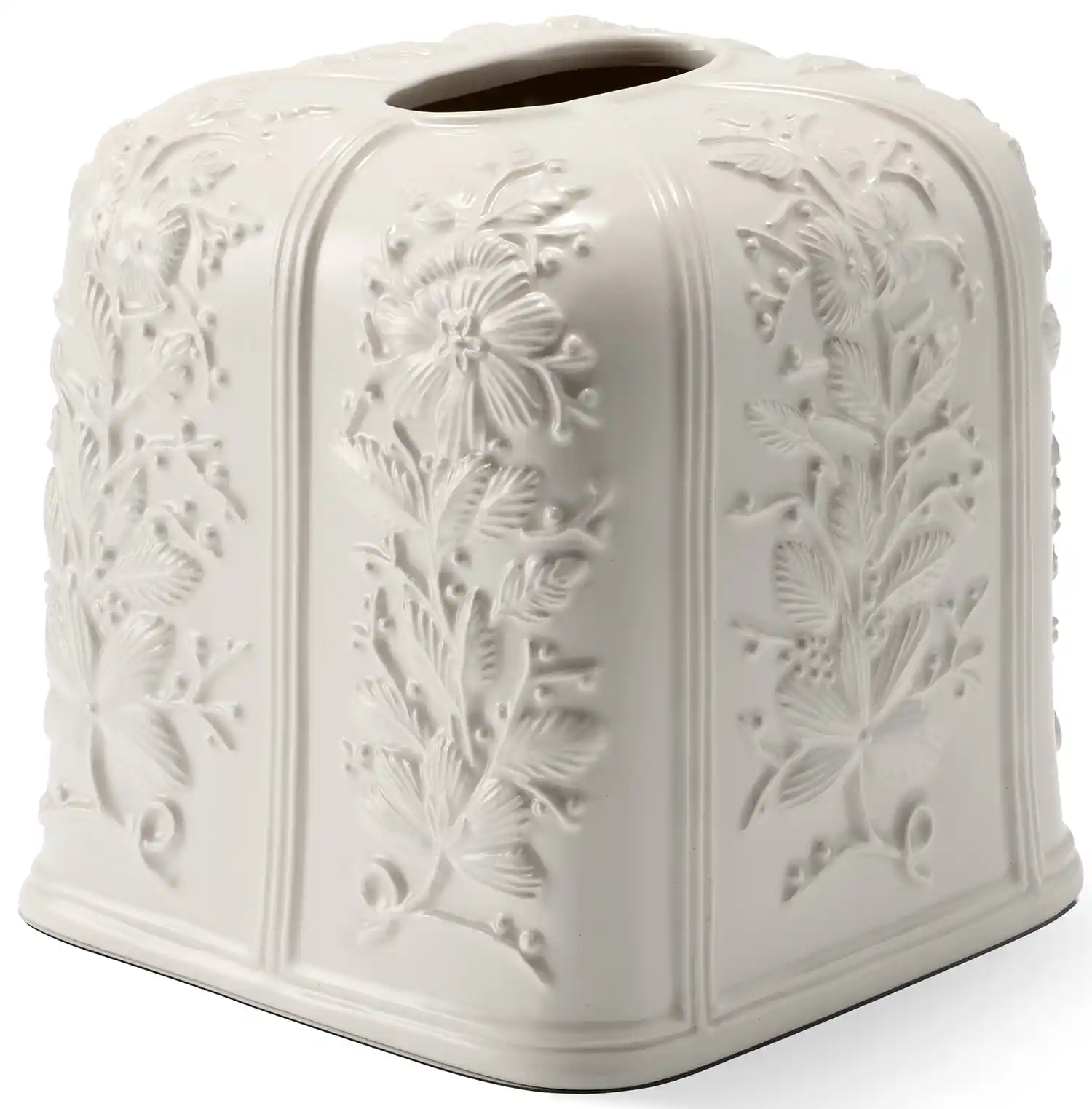 Sometimes the smallest objects bring the most charm. The Josepha Tissue Box Cover ($250) draws inspiration from 19th-century Italian décor, featuring delicate raised florals and a creamy white finish that feels fresh and timeless. Placed in a bathroom, on a vanity, or beside the bed, it transforms an everyday essential into a decorative accent.