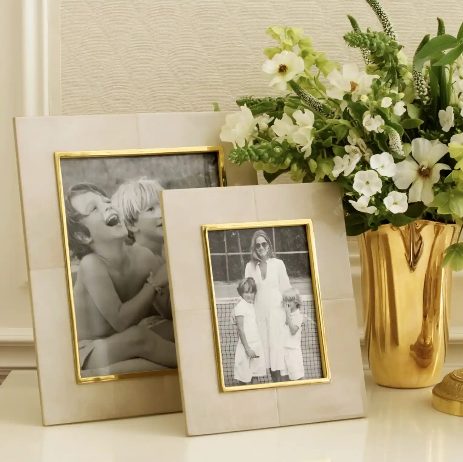 The Livio Parchment Frame (starting at $450) turns cherished memories into part of the décor. Wrapped in creamy parchment-embossed leather with a glossy finish, the frame balances classic and contemporary design. Whether displaying a travel photograph or a family portrait, it presents each image with understated elegance.