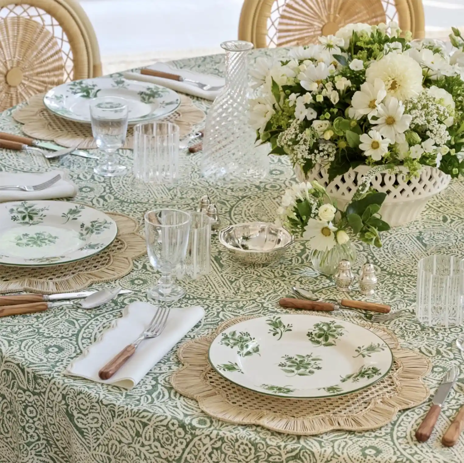For a lighter, more relaxed table setting, the Scalloped Raffia Placemat ($60) introduces natural texture and warmth. Handwoven from raffia and finished with a delicate scalloped edge, it layers beautifully beneath dinnerware while adding an organic, sun-washed feel. Ideal for everything from a leisurely brunch to a candlelit dinner, it is the sort of detail that brings a tablescape together with ease.