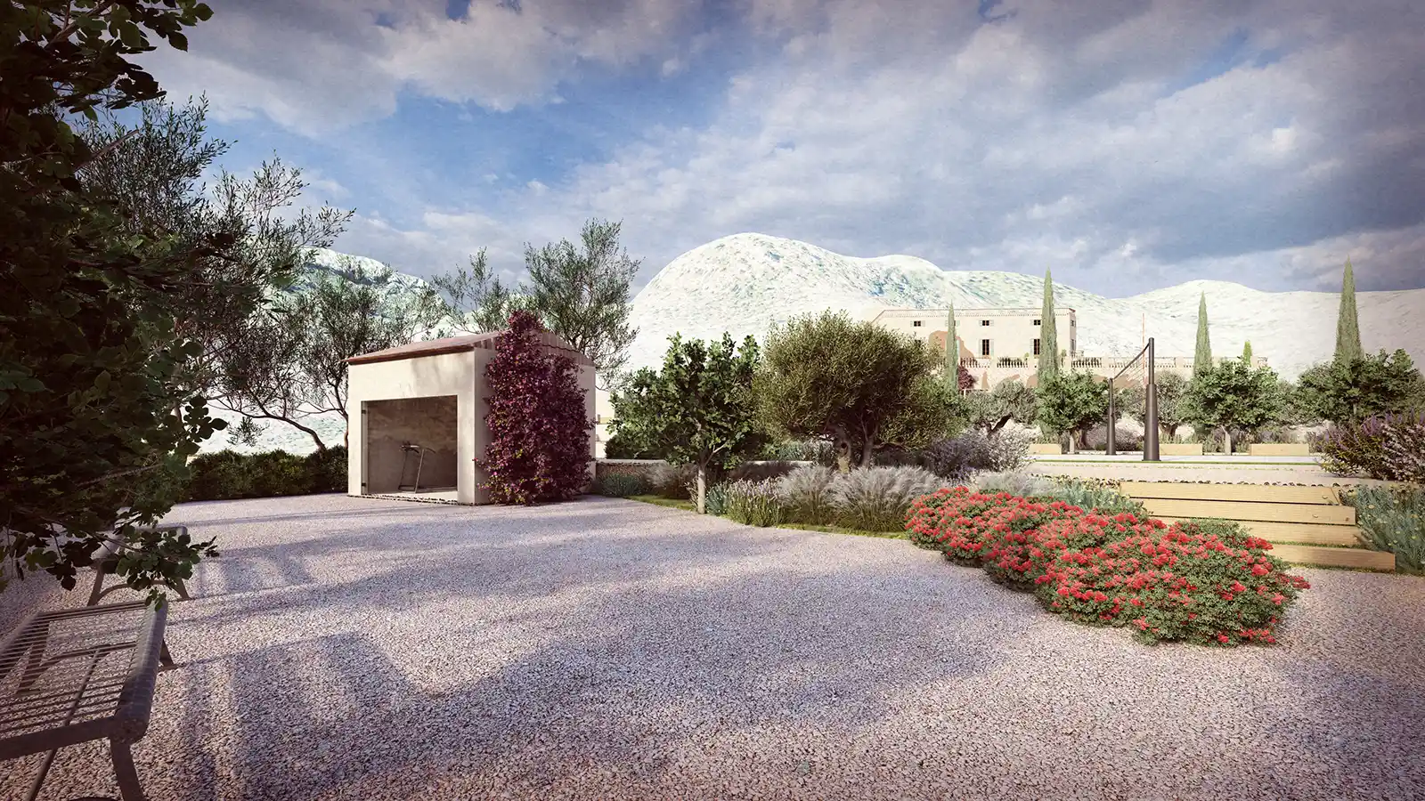 Botanically, every decision was steeped in respect for the land. Native Mediterranean flora was carefully preserved, with landscapes composed of ancient olive trees, fragrant lavender, and vibrant local blooms. Water management was a top priority in this dry region; the design included innovative solutions like rainwater harvesting, greywater recycling, and smart irrigation systems that dramatically reduce water consumption.