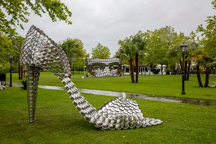 Also featured in the gardens is (Betty Boop PA), Vasconcelos’ most iconic work and part of the artist’s famous shoe series. The high-heeled shoe is crafted out of saucepans and questions the meaning of the word ‘feminine’ in today’s world.