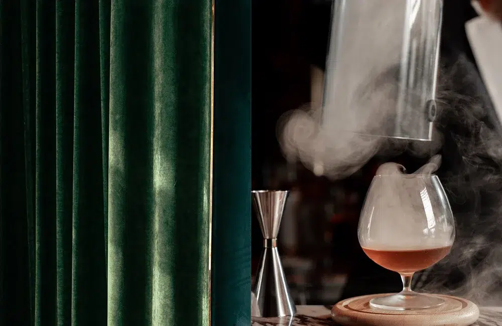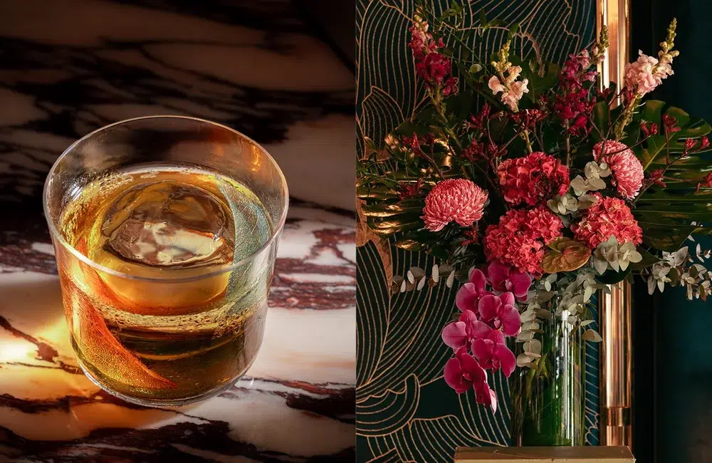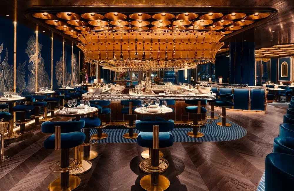 Light falls softly across polished surfaces, catching the edge of glassware and the muted sheen of marble. Conversations settle into a steady cadence, punctuated by the low movement of the room. The space is composed, but never still, its energy building gradually as the evening unfolds.