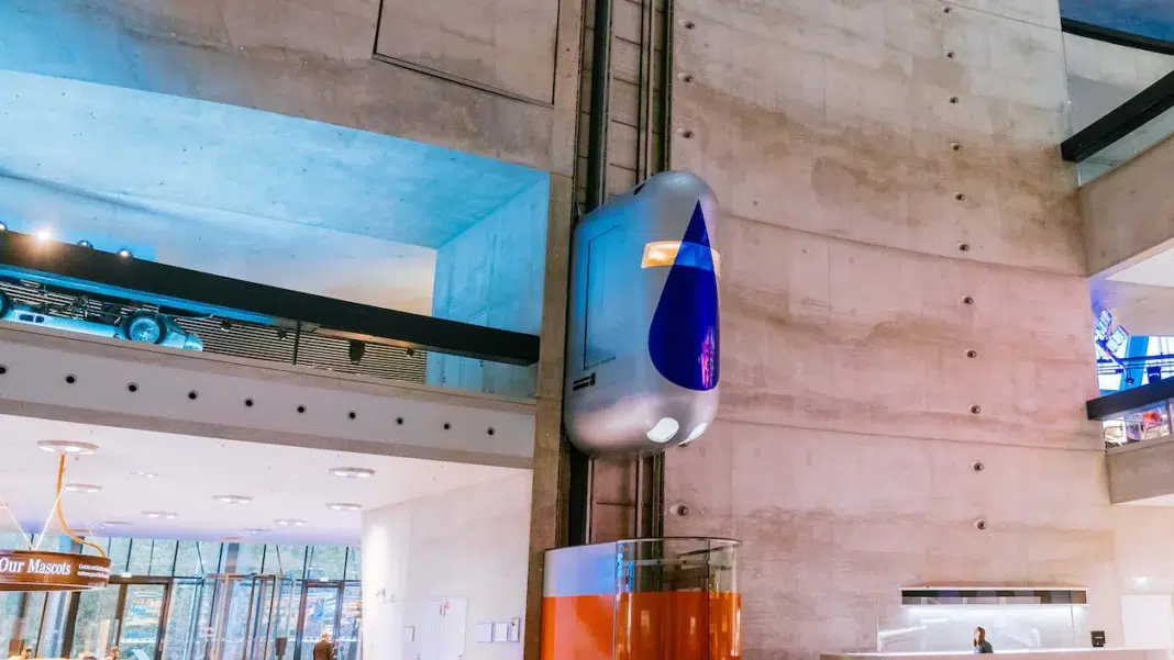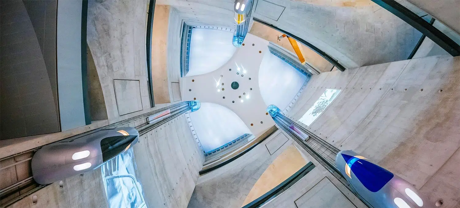 Designed by UNStudio, the museum takes the form of a sculptural spiral shaped by movement. At its heart, a vertical elevator lifts visitors swiftly to the top of the building. The ascent feels intentional, almost ceremonial. It creates a moment of pause before the experience begins.