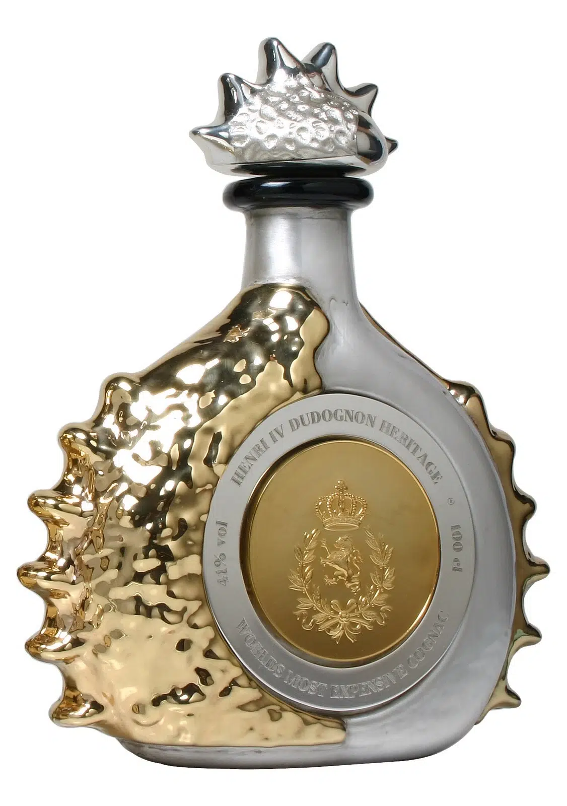 Aged over 100 years old, the Henri IV Dudognon Heritage Cognac ($2 million) is the most expensive in the world. The bottle is made from 24 karat gold and sterling platinum and adorned with 6,500 diamonds, weighing nearly 18 pounds. Packaged by jeweler Jose Davalos, the cognac contains an alcohol content of 41% and is filled with 100 cl of this beautifully aged liquor.