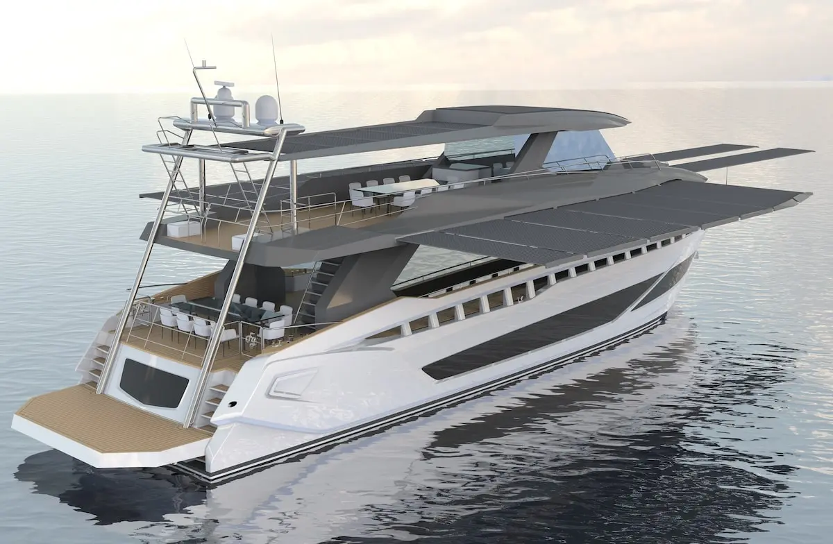 Built with the hybrid and solar panels options, choose between the 70-77′ or the 100′-101 models, and get your custom-made, environmentally friendly yacht in about 2 years. We should start seeing some of them on the ocean soon, as they got a lot of interest at the show.