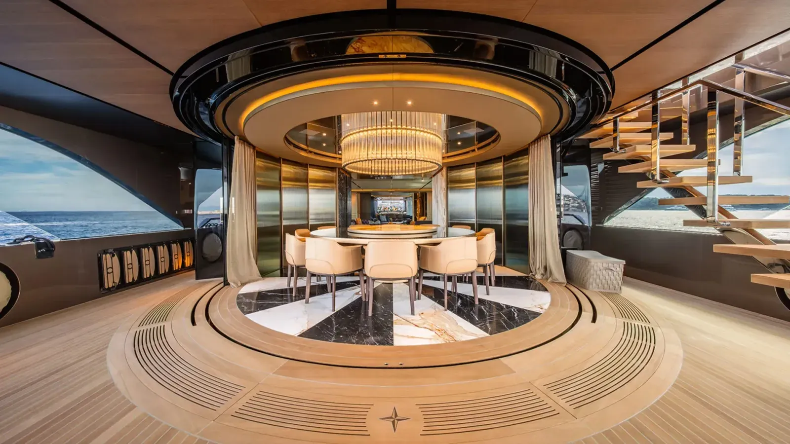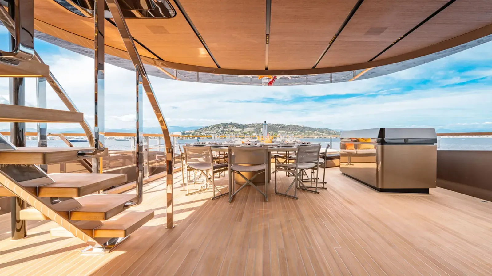This precision is most evident in how the yacht handles space. Rather than relying on sheer volume to create comfort, the design emphasizes flow, proportion, and clarity. Circulation is intuitive, transitions between interior and exterior are resolved without interruption, and sightlines are maintained wherever possible. Step onto the aft deck and the horizon sits uninterrupted at eye level, the sea close enough to register not as backdrop, but as presence. The result is a sense of openness that feels disproportionate to the yacht’s actual dimensions, not through illusion, but through discipline.