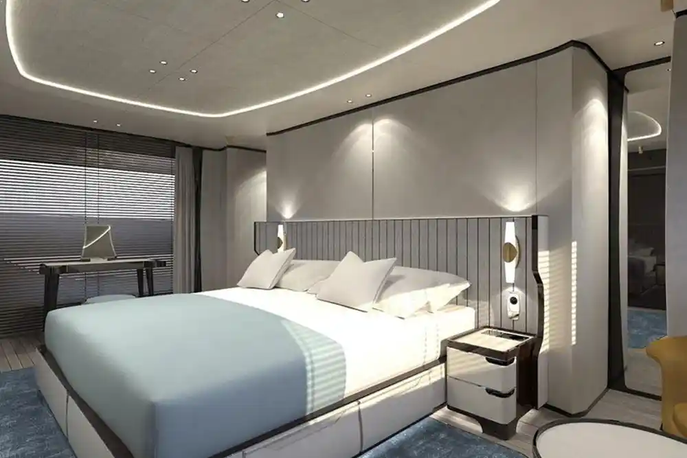 On-board accommodation consists of two master suites, two double rooms, and two twin rooms, allowing for ten guests and four crew members, ample room for everyone to enjoy time at sea.