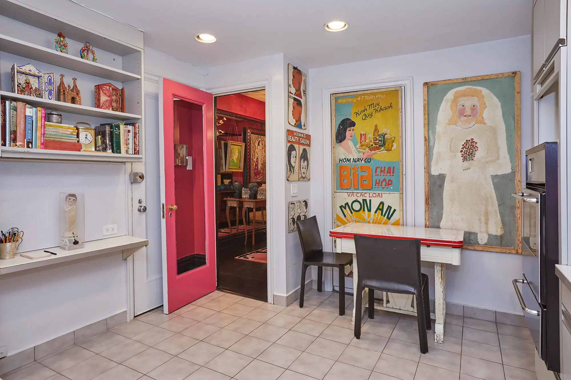 Vanderbilt’s apartment has three bedrooms, three baths, an eat-in kitchen, a library, and a cozy fireplace. Gloria turned it into a magical setting with her unique flair for art and design. Under her ownership, it came alive with color and whimsy, making a visit there a true experience for her many friends. An additional two-bedroom apartment on the ground floor, which Gloria used as her studio, will be for sale soon, though a price has not yet been determined.