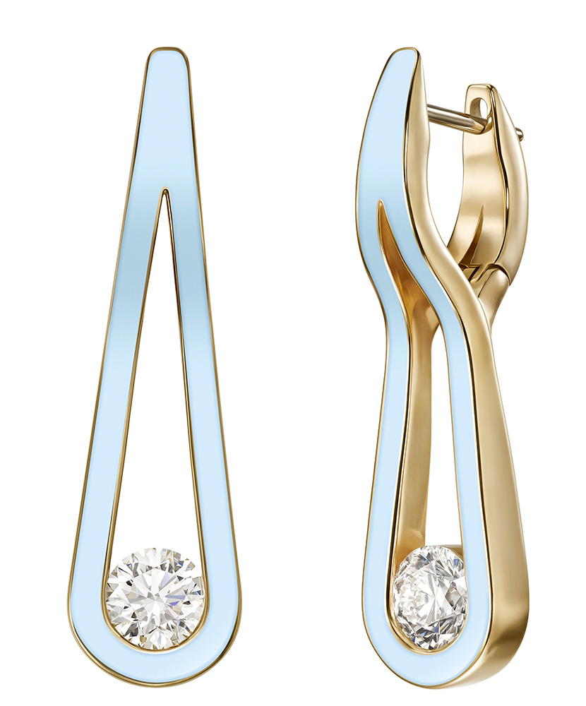 In Daphne, meanwhile, Melissa explores the balance between negative space, bold gold, and brilliant diamonds. Here, diamonds appear to float, cradled in rich gold frames that highlight their brilliance. “Many of the pieces in this collection are available in multiple sizes and ‘levels of diamond power,” she adds, with some offered in enamel-accented versions.