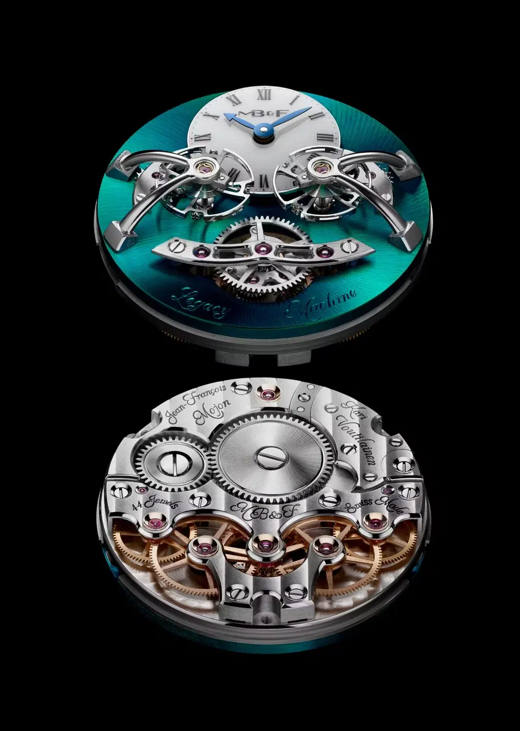 Inside, the LM2 Titanium beats with a rare horological soul: a dual-regulator movement developed exclusively for MB&F by Jean-François Mojon (Chronode) and Kari Voutilainen.