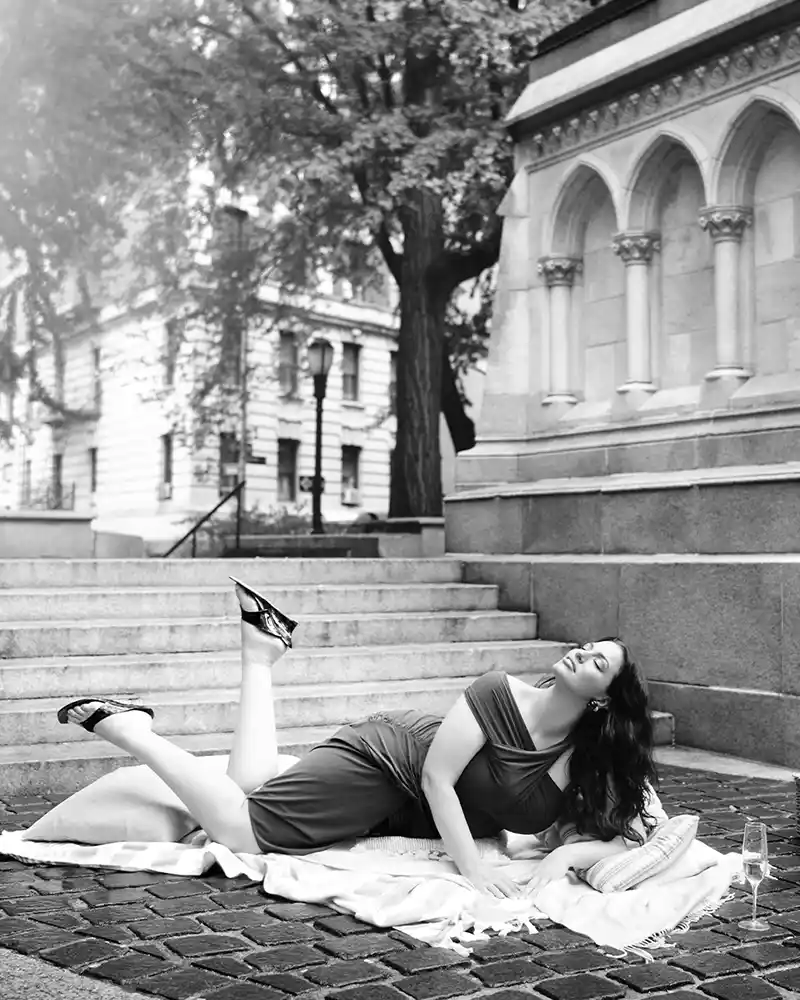 Shot in New York, the campaign focuses on the early days of spring in the city as the imagery moves between a neighborhood bookstore, a sunlit picnic, and the Upper West Side streets, presenting Ashley Graham in a series of everyday settings.