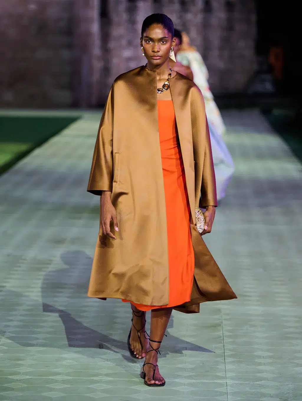 Silhouettes moved between architectural tailoring and fluid ease. Daywear retained composure; eveningwear carried controlled drama. The result was a collection that felt neither nostalgic nor overtly modern, but deliberately timeless, positioned outside the velocity of the trend cycle.