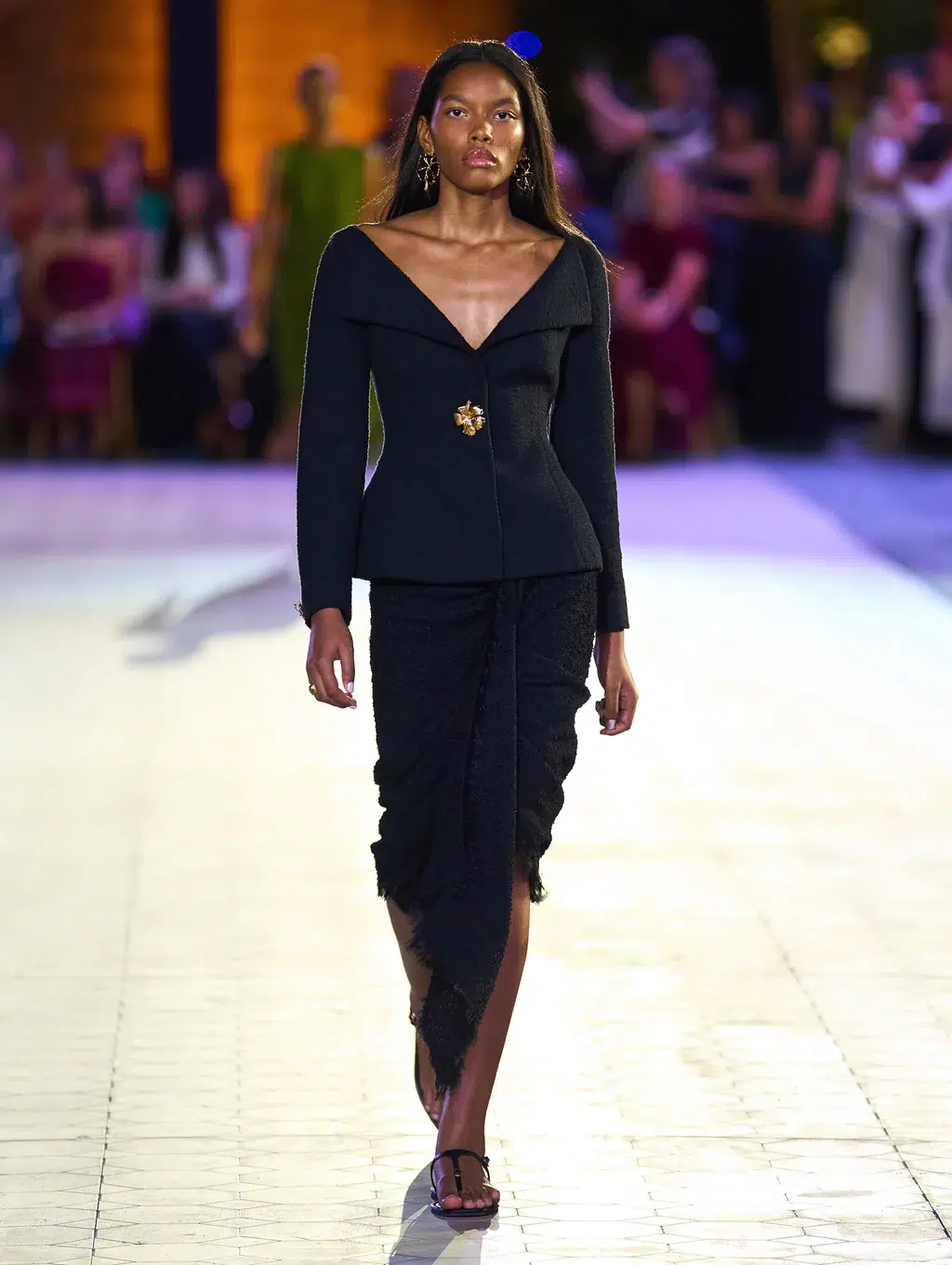 For the first time in the brand’s six-decade history, the runway featured an entirely Dominican cast. Fifty-one models, selected from local auditions, brought an authenticity that could not have been manufactured. Internationally renowned Dominican model Lineisy Montero opened the show; Hiandra Martínez closed it, framing the collection with a sense of generational continuity and national pride. The casting did more than reinforce the narrative; it completed it. The show was not merely presented in the Dominican Republic. It belonged to it.