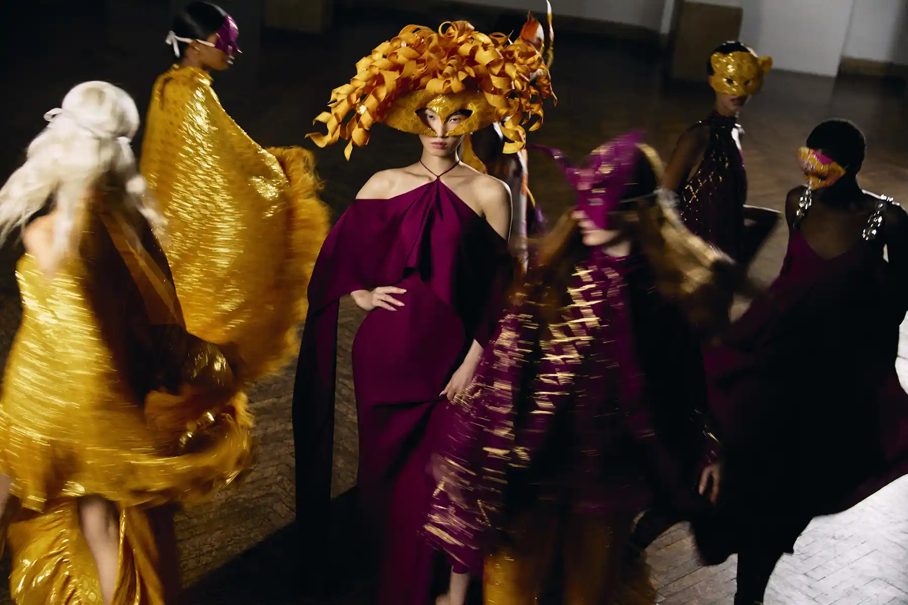 The Ball Collection completes a trilogy that began with Nocturne and Follies. Here, the designers treat excess as structure rather than fantasy. In other words, they build opulence into the fabric, the cut, and the movement.