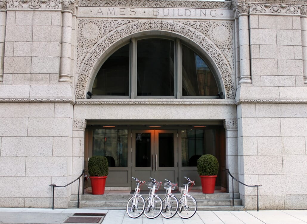 The AMES Family is a well-known family in the New England area, who made their fortune with the AMES Plow Company producing agricultural tools and later were involved with financing the Union Pacific Railroad. AMES Building housed offices until early 2000’s and was purchased and renovated into the AMES Hotel in 2009.