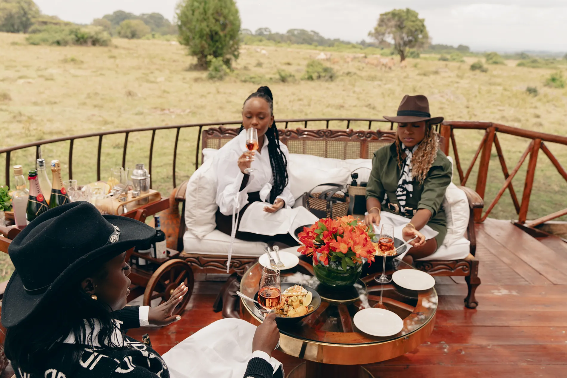 At Fairmont Mount Kenya Safari Club, the approach becomes more restrained. A private walk through the highlands leads to a secluded vantage point where wildlife gathers without intervention. The accompanying dining experience is intentionally quiet, allowing the landscape, not the table, to define the moment.