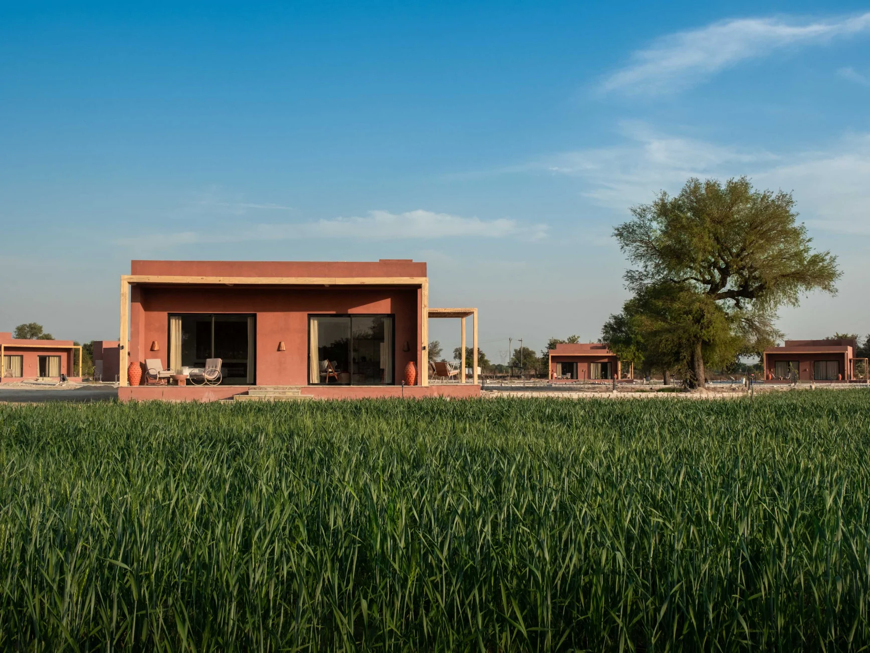 Beyond the city walls, Mharo Khet offers a different idea of luxury: rural, tactile, and deeply grounded. Cottages built in natural tones blend seamlessly into farmland, while handmade details and open skies replace ornamentation. The design is slow, intentional, and rooted in daily rhythms.