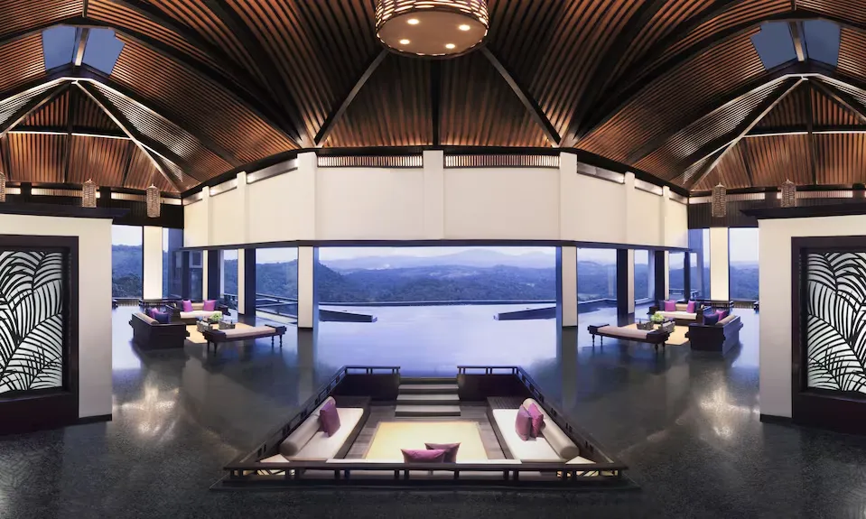 Suspended above the rainforest canopy, Taj Madikeri is one of India’s boldest examples of contemporary nature architecture. Elevated walkways, angular forms, and expansive glazing create the sensation of floating within the forest—modern, immersive, and quietly dramatic.