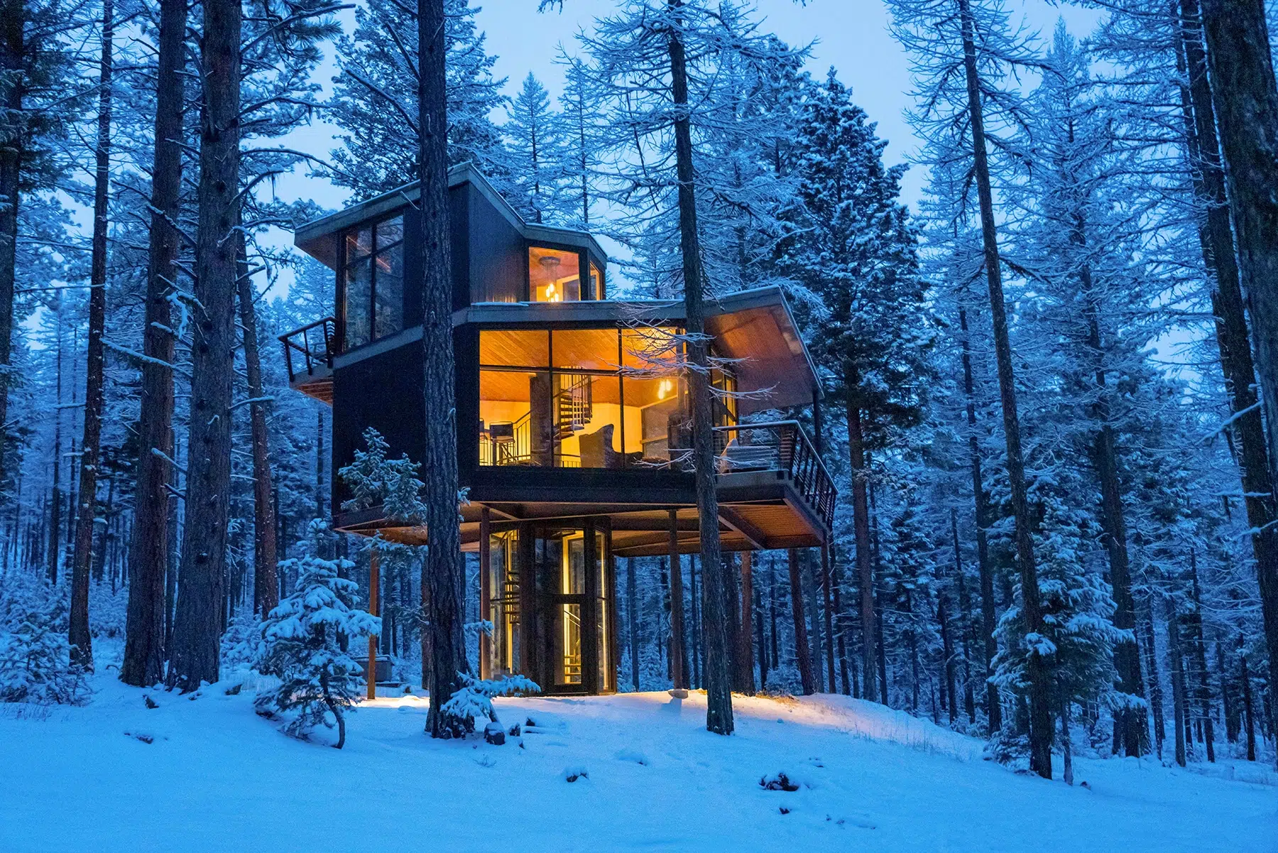 Tucked into Montana’s wilderness, The Green O offers treetop sanctuaries known simply as “hauses.” Elevated above the forest floor, they pair expansive glass walls with deep soaking tubs and wood-fired warmth. This is American luxury distilled—private, grounded, and unapologetically quiet.