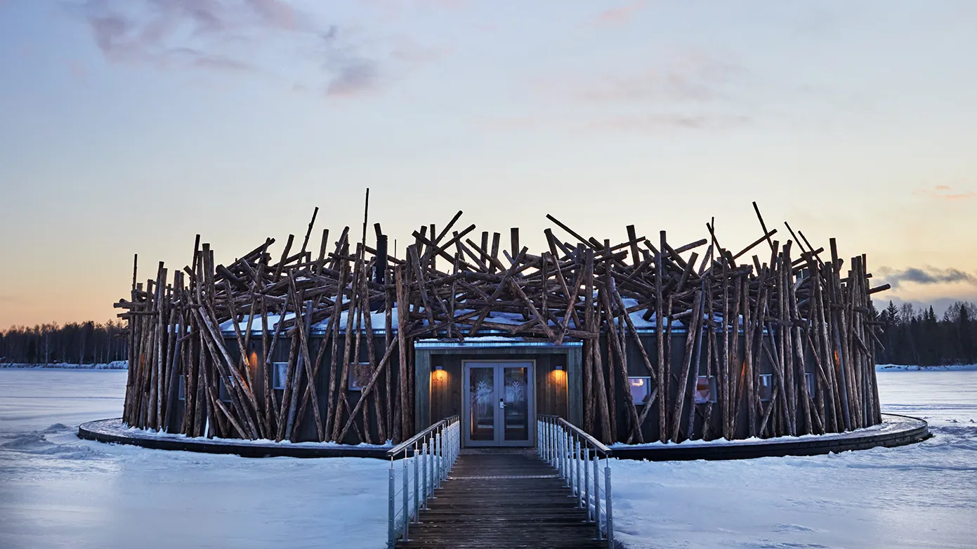A floating circular hotel on the frozen Lule River, Arctic Bath blends avant-garde architecture with ancient Nordic bathing rituals. Guests alternate between steaming saunas and plunges into ice-cut river holes, then retreat to minimalist cabins overlooking endless snowfields. It is one of Scandinavia’s most spiritually resonant winter experiences.