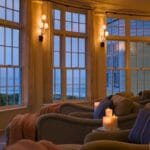 Seasons Restaurant, open to the public, is terrifically appointed, created by the Niemitz Design Group of Boston, and features such things as a 15-foot long communal dining couch with three small tables. Menu items carry the origin of each dish’s main ingredient and virtually all food is from within a 150-mile radius, coming from places like Cavendish Farms in Vermont and Wolfe’s Neck Farm in Maine. In summer, the chefs harvest their own seasonings from an on-site herb garden.