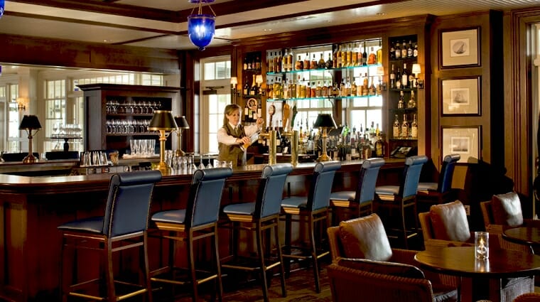 One of the best places in the hotel is outside on the wide, wrap-around porch, an exquisite place to enjoy drinks in the waning summer sun, though such a dalliance will cost you; drinks are very expensive here, cocktails starting around $14 each. But the view alone, of the ocean, croquet court, adjacent palatial homes, is worth a quick round.