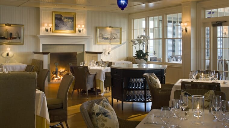 Seasons Restaurant, open to the public, is terrifically appointed, created by the Niemitz Design Group of Boston, and features such things as a 15-foot long communal dining couch with three small tables. Menu items carry the origin of each dish’s main ingredient and virtually all food is from within a 150-mile radius, coming from places like Cavendish Farms in Vermont and Wolfe’s Neck Farm in Maine. In summer, the chefs harvest their own seasonings from an on-site herb garden.