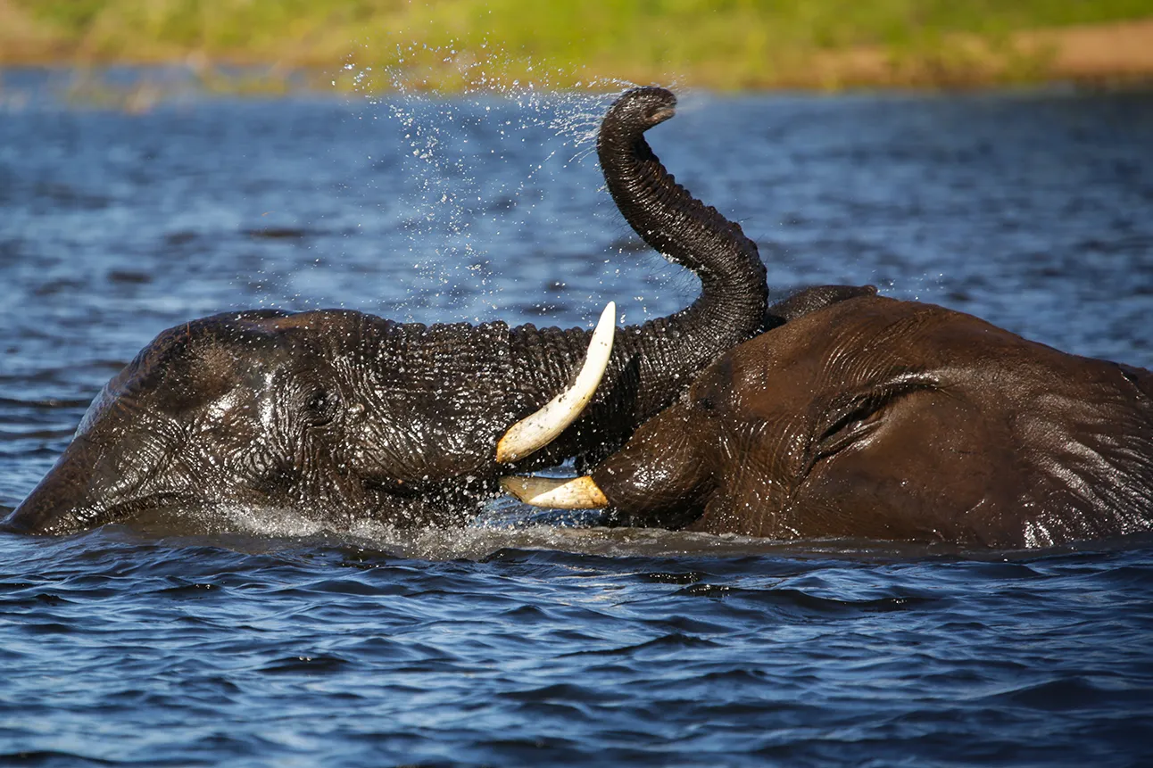 With forty-four rooms, the lodge is able to host large families or groups traveling together. In this special, most north-easterly corner of the 4,517 sq. mile Chobe National Park, the Chobe River provides the ebb and flow to your safari. Heading out on a boat cruise with guide and boat captain Lebo, the wildlife in and along the river provides great photo opportunities. Elephants are the stars of the show, and encountering two large bulls swimming in the afternoon is magical. What makes the sighting even more entertaining is when they start dunking one another under the water!