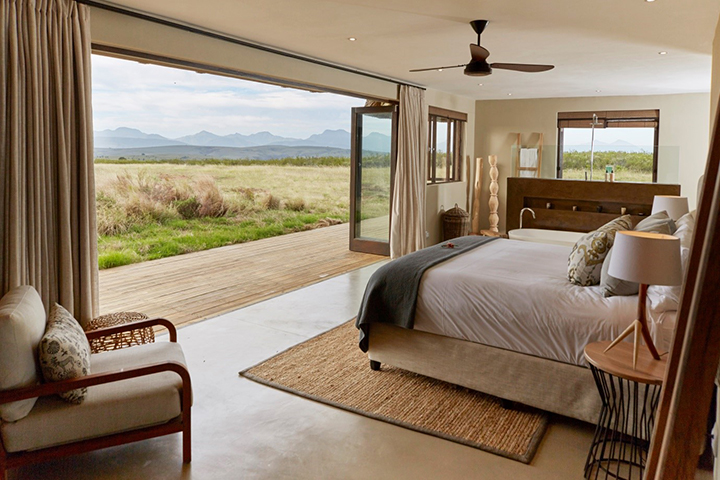 Upon entering the house, I am awe-struck by the panoramas that unfold in front of me. Douglas asks which of the three bedrooms we would like to enjoy our slumber in, and we opt for the guest room, which is closest to where our daughter will be sleeping upstairs. With 180-degree views from each bedroom and the Outeniqua mountains in the distance, you will want to wake up like this for the rest of your life. The only rush-hour traffic you might encounter is some giraffe or zebras taking a walk through your front garden.